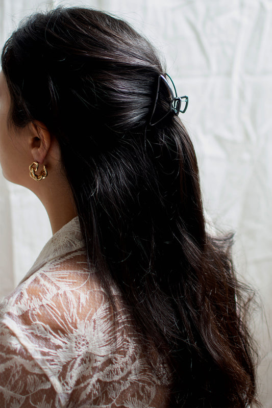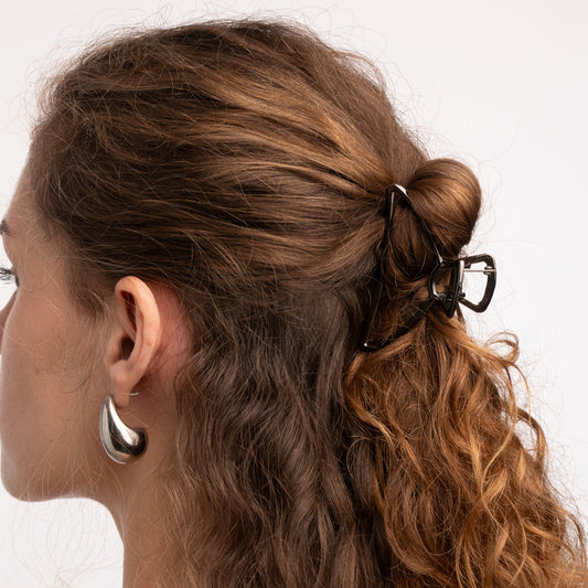LARGE GEOMETRIC METAL CLAW CLIP IN BLACK