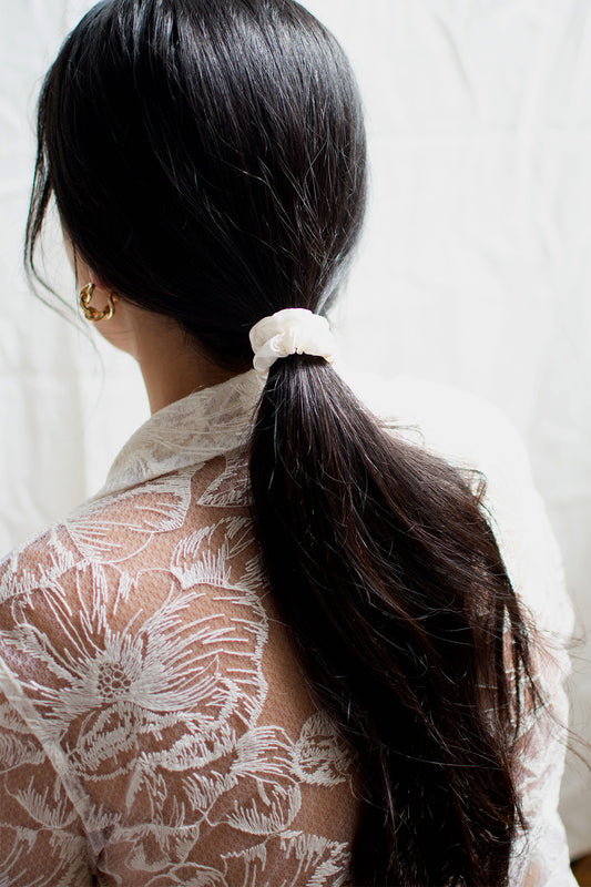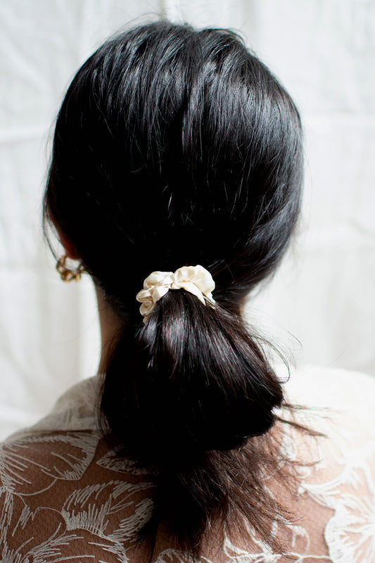 SMALL SILK SATIN SCRUNCHIES 2 PC SET IN WHITE