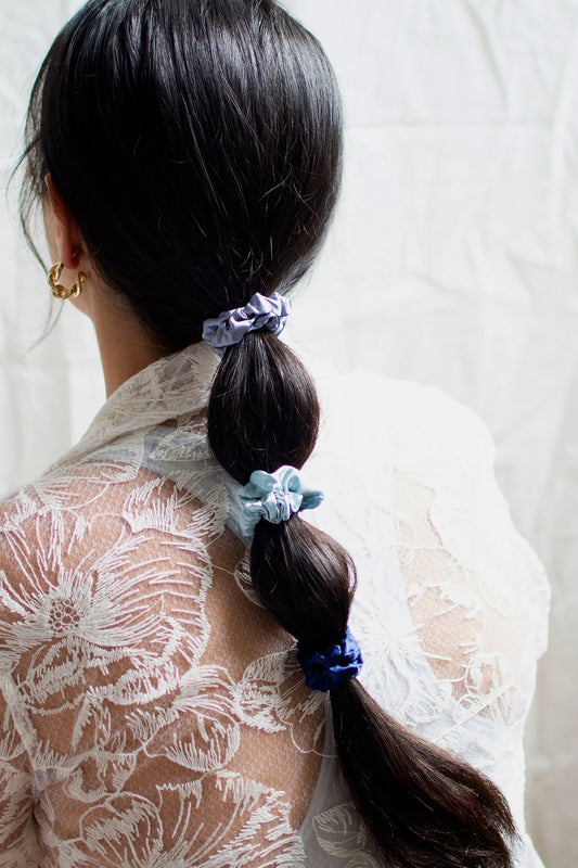 SMALL SILK SATIN SCRUNCHIES 2 PC SET IN SLATE BLUE