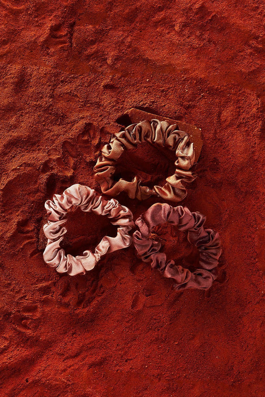 SMALL SILK SATIN SCRUNCHIES 2 PC SET IN MAUVE