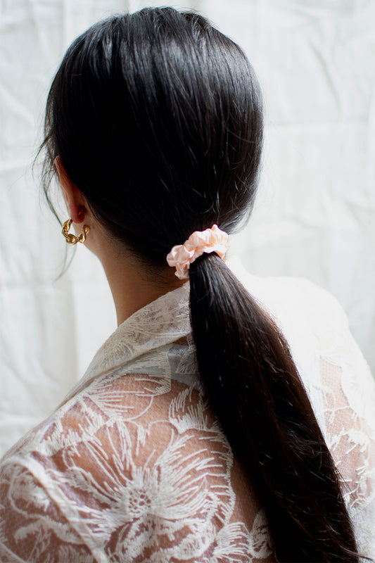 SMALL SILK SATIN SCRUNCHIES 2 PC SET IN PINK