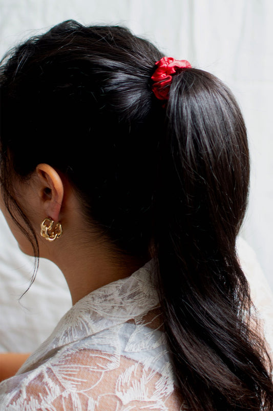 SMALL SILK SATIN SCRUNCHIES 2 PC SET IN RED