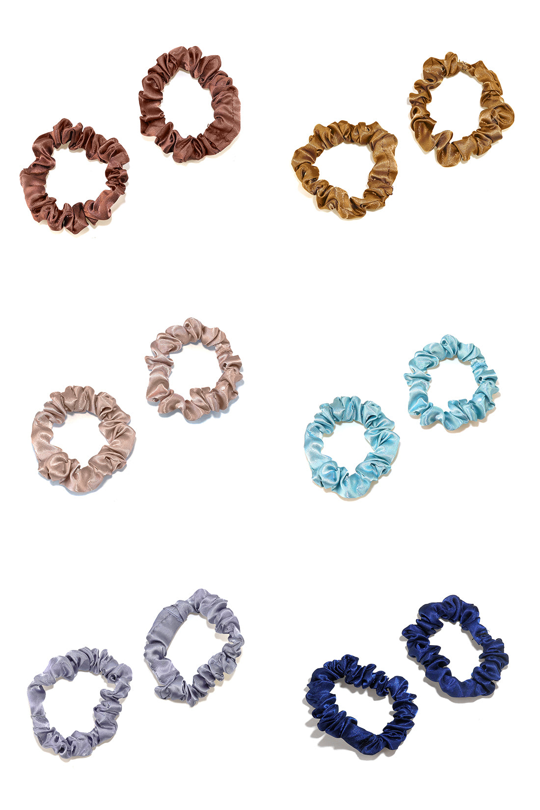 The small silk satin scrunchies are perfect for keeping hair back out of your face. With its stretchy satin material it will hold all hair types securely in place. Wear it daily, layer them to create the perfect hold, or coordinate with your outfit.